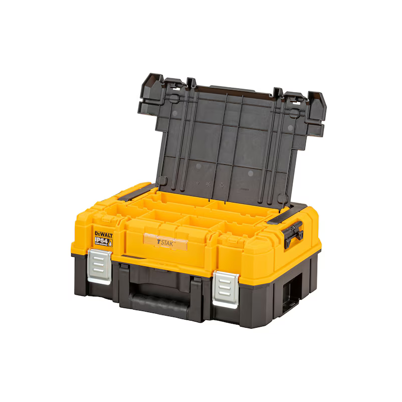 Maleta TSTAK multiusos DeWALT con espuma en el interior personalizable para mayor seguridad en el transporte de herramientas eléctricas.