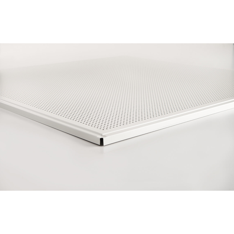Módena T24 en bandeja metálica 600x600mm para instalación de un sistema registrable de techo metálico sobre perfilería T24, T-Decor 24 o T-Clip 24.